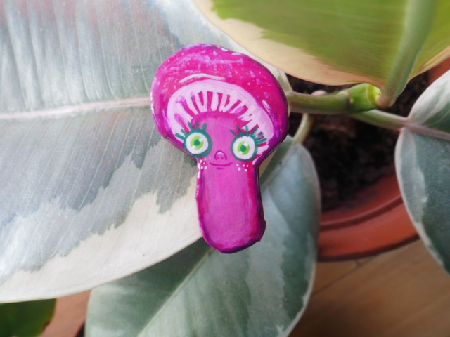 First I search mushroom with funny shapes or colours, then I choose the most interesting and I draw a quick sketch on a piece of cardboard. I cut the silhouette of the sketch I like and use it as a mold for my pieces. At the moment I am creating 5 of each type of mushroom. After I cut the shapes on the clay it’s time for me to wait for some days till the clay is completely dry. Once it’s dry I paint the pieces with acrylic paint. I like starting the first piece without planning the outcome, I generally like the design so I copy it in the rest of the pieces.