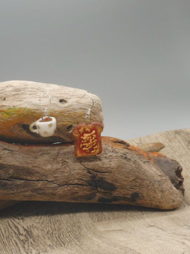 These earrings have been made with polymer clay, resin and Sterling silver earring hoops.