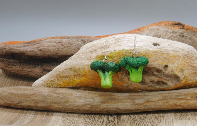These earrings have been made with polymer clay, resin and Sterling silver earring hoops.