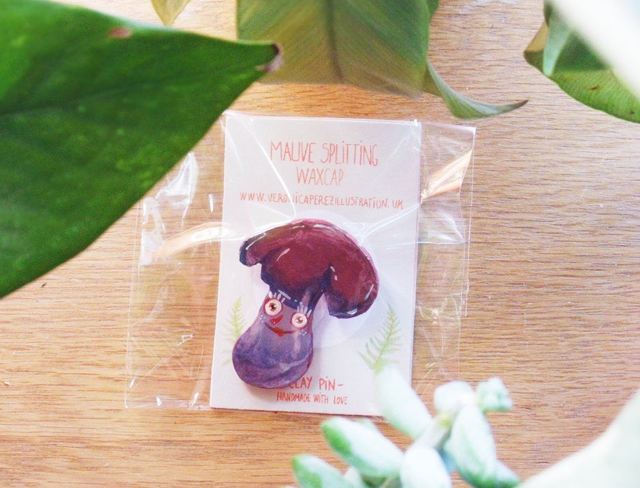 First I search mushroom with funny shapes or colours, then I choose the most interesting and I draw a quick sketch on a piece of cardboard. I cut the silhouette of the sketch I like and use it as a mold for my pieces. At the moment I am creating 5 of each type of mushroom. After I cut the shapes on the clay it’s time for me to wait for some days till the clay is completely dry. Once it’s dry I paint the pieces with acrylic paint. I like starting the first piece without planning the outcome, I generally like the design so I copy it in the rest of the pieces.